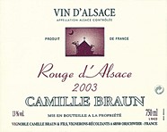 Camille Braun perpétue avec talent une tradition viticole inaugurée par ses ancêtres au XVIIes. Il exploite 13,5 ha de vignes sur des terroirs variés autour de la petite cité d'Orschwihr, au sud de la route des Vins. Né de sols argilo-calcaires, son rouge d'Alsace a fait grande impression. Grenat profond aux nuances violettes, ce 2003 affiche un nez puissant où la cerise et le sous-bois s'associent à un boisé agréable légué par un séjour de quatorze mois dans le chêne. Harmonieux au palais, charnu et chaleureux, il est encore plein de sève et de jeunesse. Sa richesse tannique et sa persistance laissent augurer une belle longévité. Signalons que le gewurztraminer cuvée Annabelle 2004 (8 à 11 €) (32 g/l de sucres résiduels) a obtenu une citation.