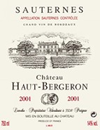 Combien de bouteilles de Château Haut-bergeron 2001 blanc ont-elles été produites ? 43 000 bouteilles de cette cuvée ont été produites.