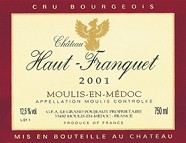 CHÂTEAU HAUT-FRANQUET 2001 - rouge