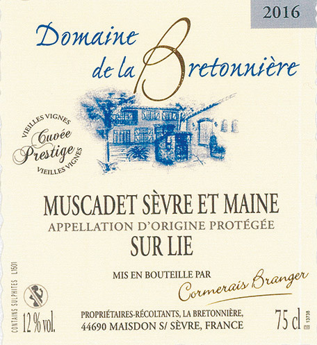 DOMAINE DE LA BRETONNIÈRE Sur lie Cuvée Prestige Vieilles Vignes 2016 - blanc