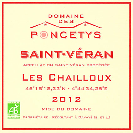 DOMAINE DES PONCETYS Les Chailloux 2012 - blanc