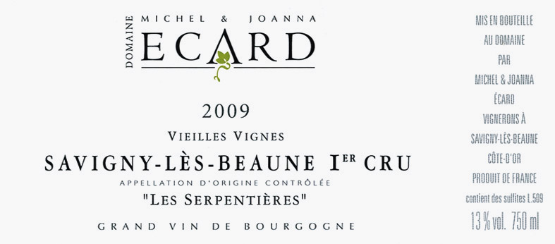 DOMAINE MICHEL ET JOANNA ÉCARD Les Serpentières Vieilles Vignes 2009 • 1er cru - rouge