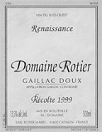 Détail du vin Domaine Rotier Doux Renaissance 1999 blanc