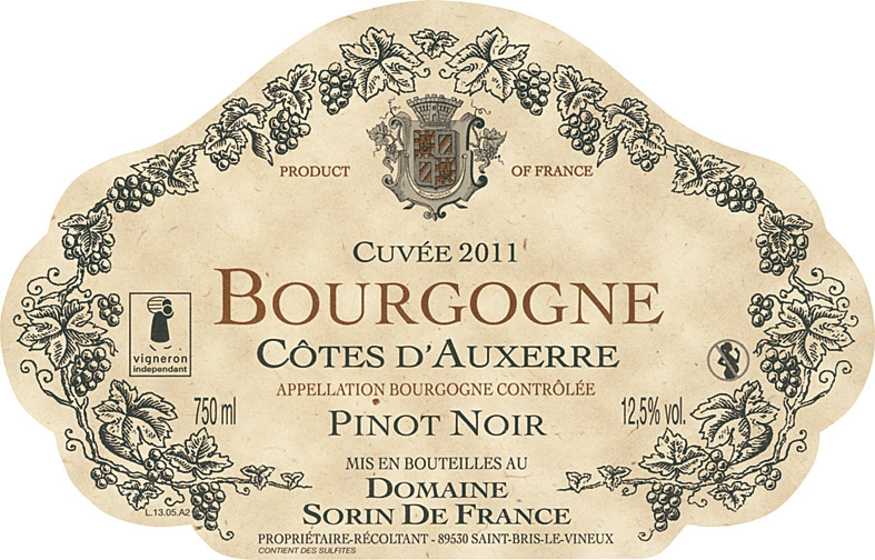 Détail du vin Domaine Sorin De France Côtes D'auxerre 2011 rouge