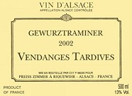 Détail du vin Preiss Zimmer Vendanges Tardives 2002 blanc